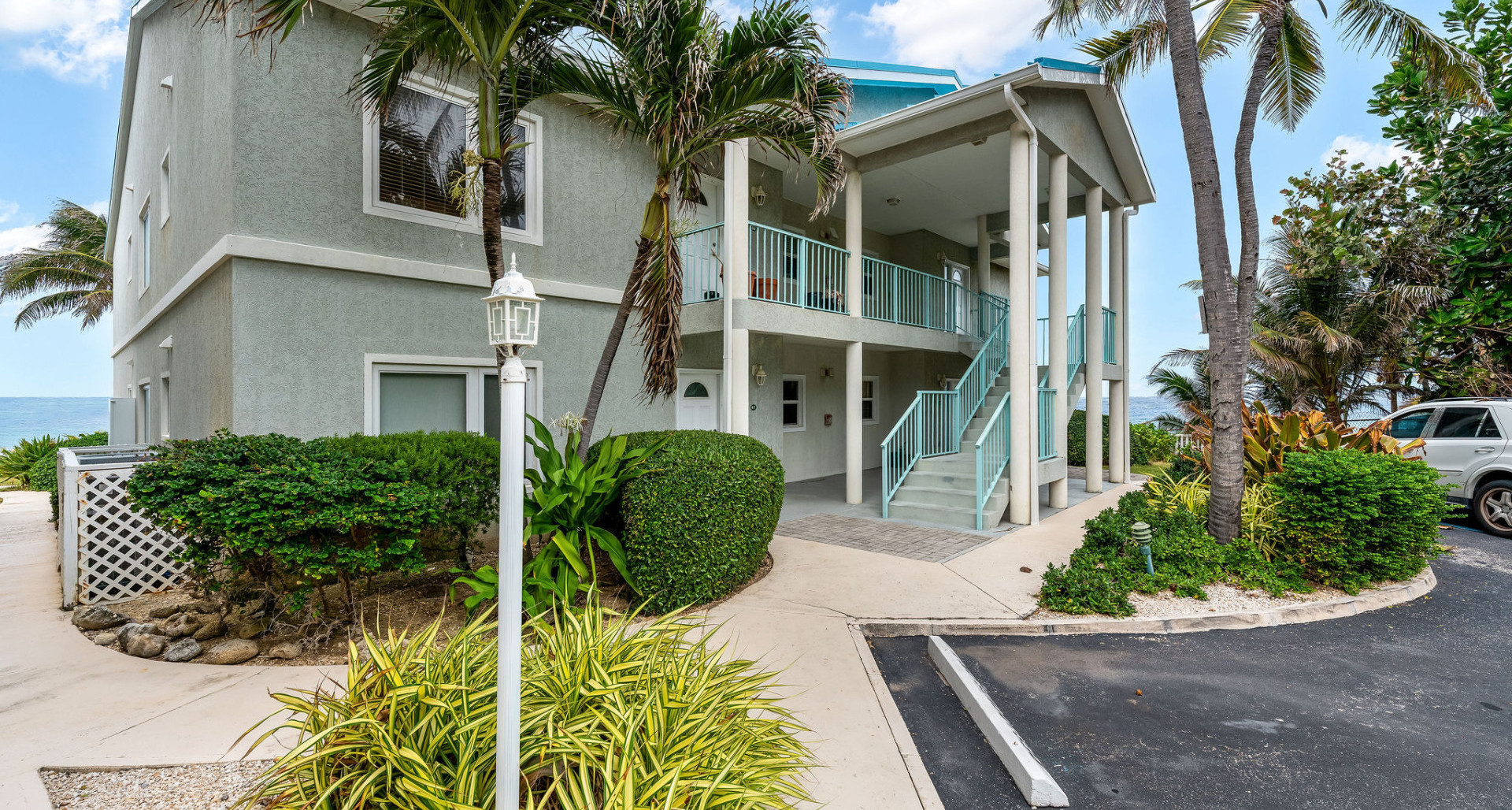MLS ID: 420371 - Top floor, bright and spacious 3 bed, 2 bath in an ocean front complex in West Bay on a quiet road. Set on huge landscaped grounds with large shared pool with huge pool deck and outdoor kitchen. Apartment offers 3 large bedrooms, 2 bathrooms, master has an en suite and walk in closet. Living area, kitchen, dining area is huge and goes straight to the private ocean front patio with unobstructed ocean views and 12ft ceilings.